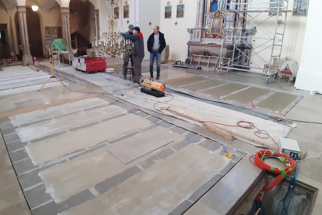 The parish has had the nave refurbished. The IDEAL BASIC EPS 30 hydraulic system was used for future temperature control in the pew area. COMPACT FLOOR EXPERT 15 was chosen as the thermal conductive layer, as it fulfils all the technical requirements for this type of building. In addition, the E-NERGY CARBON FLEECE electric heating foils were laid on the EXPERT 15 as on-demand heating. These