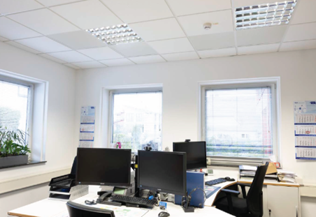 For office spaces using a suspended grid style system, our SMARTFLEX range of heated tiles easily replace incumbent solutions with direct radiant heat above work spaces with output as little as just 300watts. Running at 24volts ensures Safety Extra Low Voltage (SELV) directive is covered.