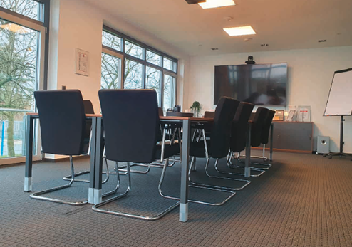 The office building is already equipped with water-guided surface heating in the ceiling and floor. Since the premises are not used continuously, E-NERGY CARBON FLEECE electric heating foils were installed on the ceiling in the entrance area and the meeting room. These are now used as on-demand heating. They are activated via a motion detector. The hydraulic heating system covers the base load at an energy-saving temperature level when not in use.